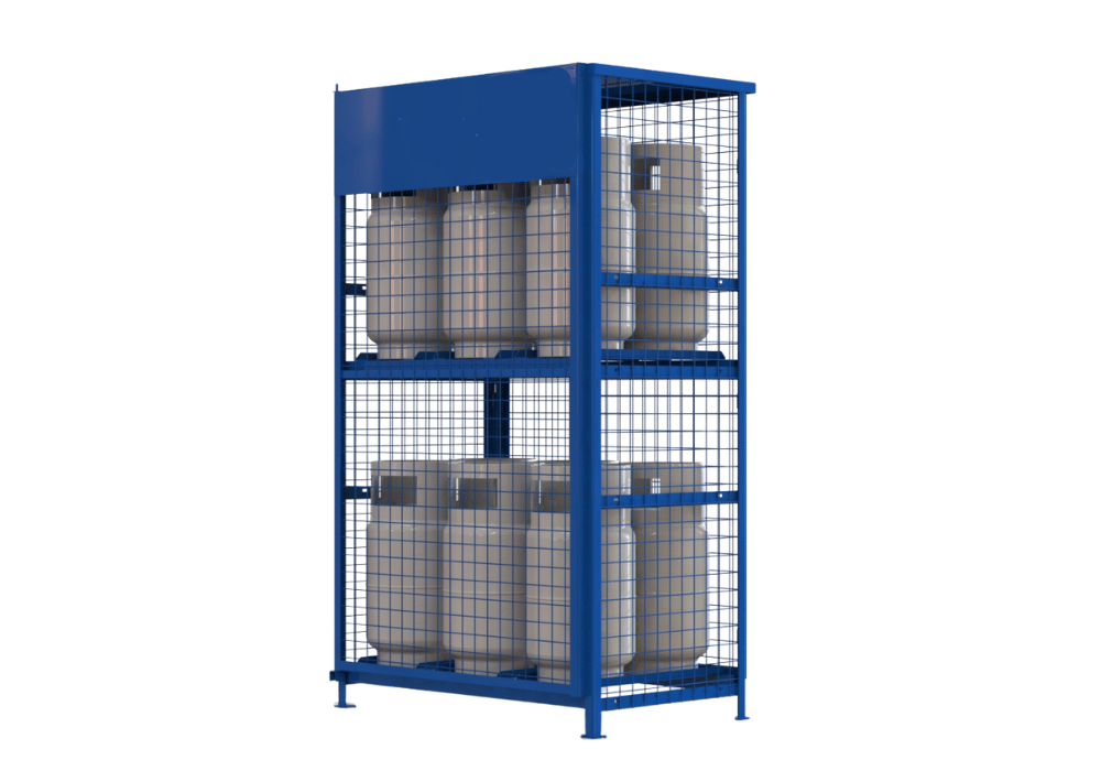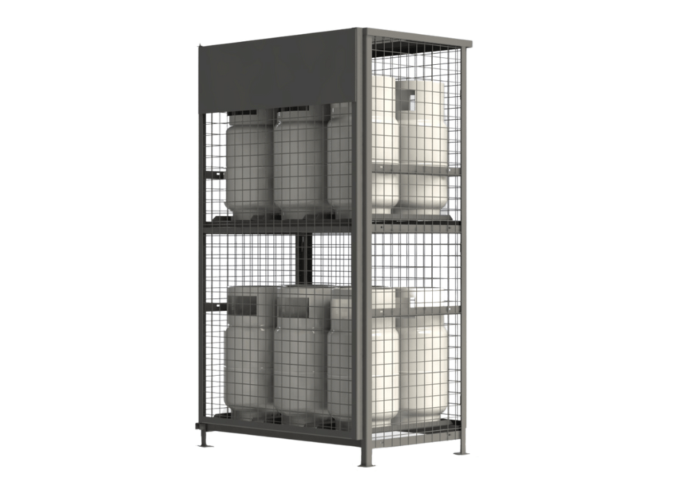 The 12-Cylinder Propane Cage is built to accommodate up to twelve 33 lbs propane tanks. With dimensions of 40″W x 26″D x 72″H, this cage is constructed from durable 11-gauge steel, offering exceptional strength and stability. Its spacious design is ideal for large-scale industrial and commercial storage needs. The robust steel construction ensures secure containment and long-lasting performance, making it a reliable solution for safely managing multiple propane tanks. The cage is designed for easy access and inspection while maintaining secure storage.