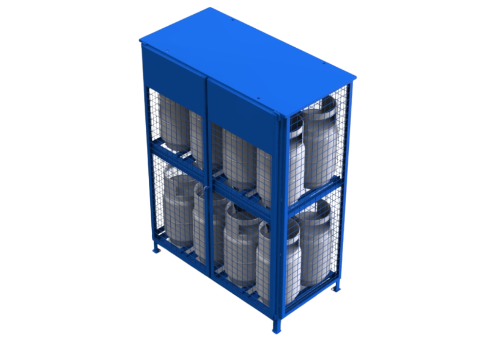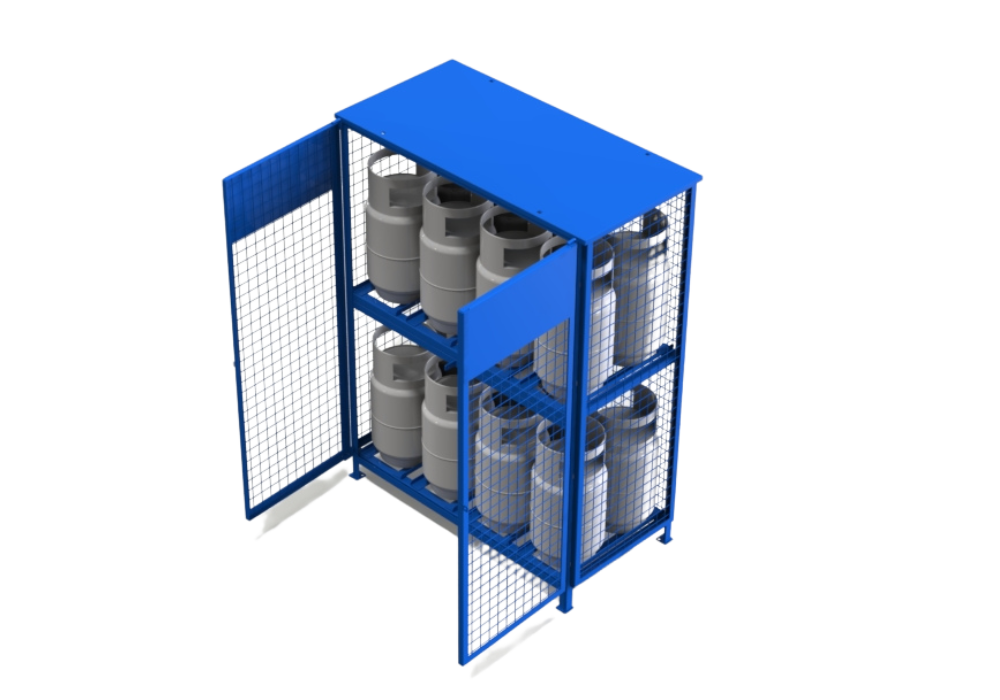 The 16-Cylinder Propane Cage is designed to securely hold up to sixteen 33 lbs propane tanks. Measuring 53″W x 27″D x 72″H, this cage is constructed from heavy-duty 11-gauge steel, providing exceptional strength and durability. Its large capacity makes it ideal for extensive industrial and commercial storage requirements. The cage’s robust construction ensures reliable containment and long-term performance, while its spacious design allows for easy access and efficient management of multiple propane tanks.