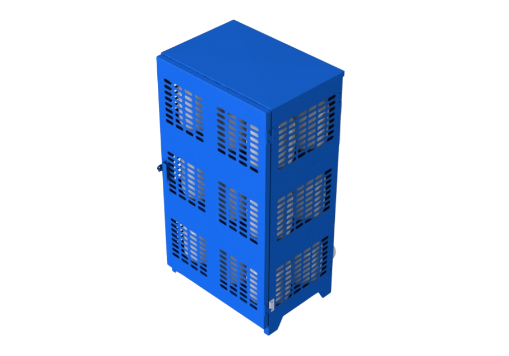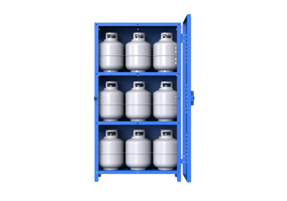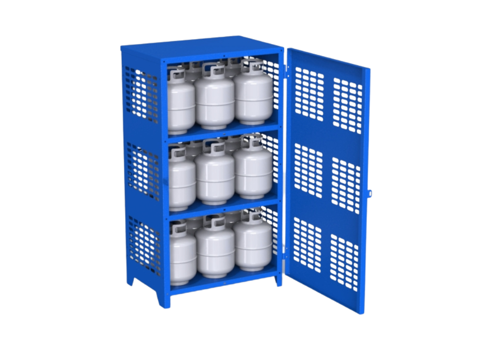 The 18-Cylinder Sheet Cage is engineered to accommodate up to eighteen 33 lbs cylinders securely. With dimensions of 39″W x 27″D x 72″H, this cage is made from durable 14-gauge steel sheets, offering solid protection and longevity. Its efficient design makes it suitable for industrial and commercial settings where maximizing space is crucial. The cage’s sturdy steel construction ensures the safe handling and storage of cylinders, allowing for easy access and inspection.