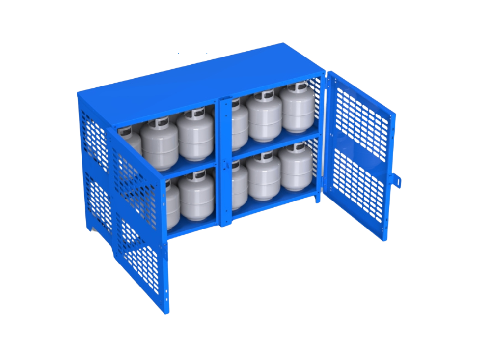The 24-Cylinder Sheet Cage LB is designed to securely accommodate up to twenty-four 20 lbs cylinders. With dimensions of 75″W x 27″D x 50″H, this cage is constructed from durable 14-gauge steel sheets, providing reliable storage with a lower profile for easy access. Its wide design allows for efficient organization in industrial and commercial settings where space and accessibility are key. The robust steel construction ensures the safe handling and containment of cylinders, providing a practical storage solution.